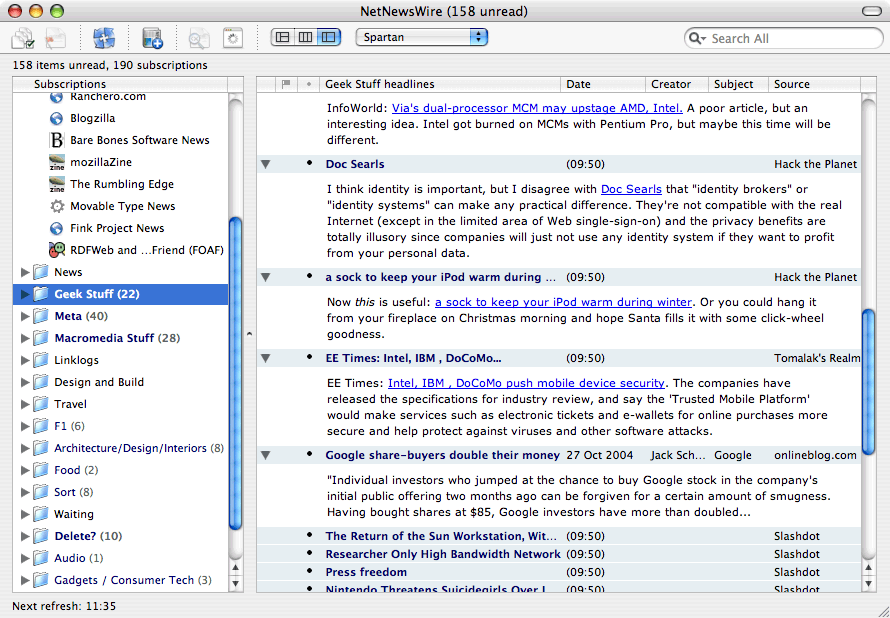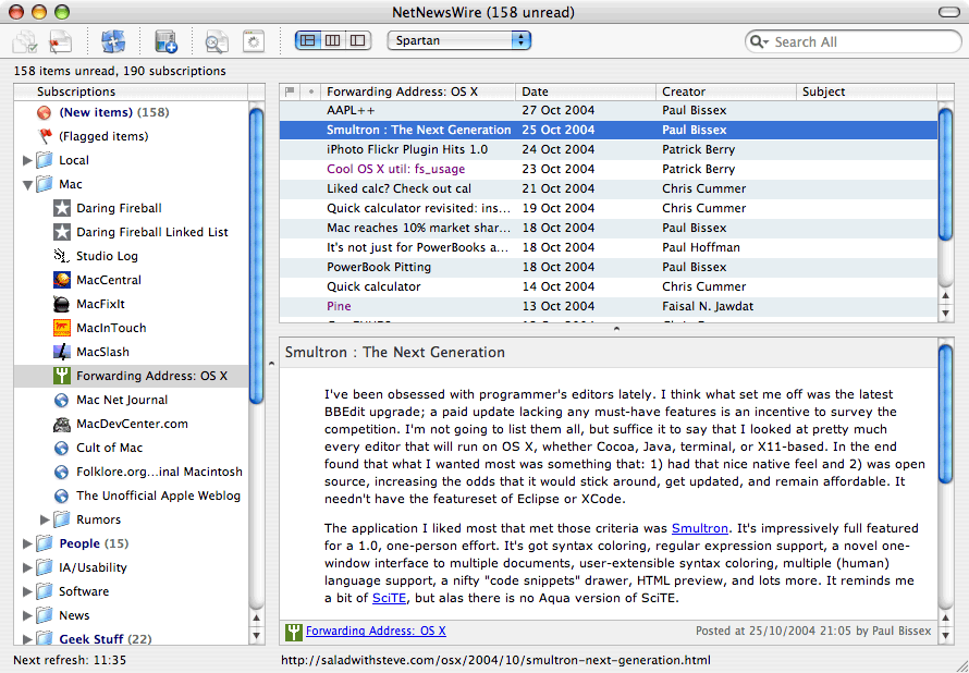 Spartan is a stylesheet for NetNewsWire 2. Have a look at some screenshots…